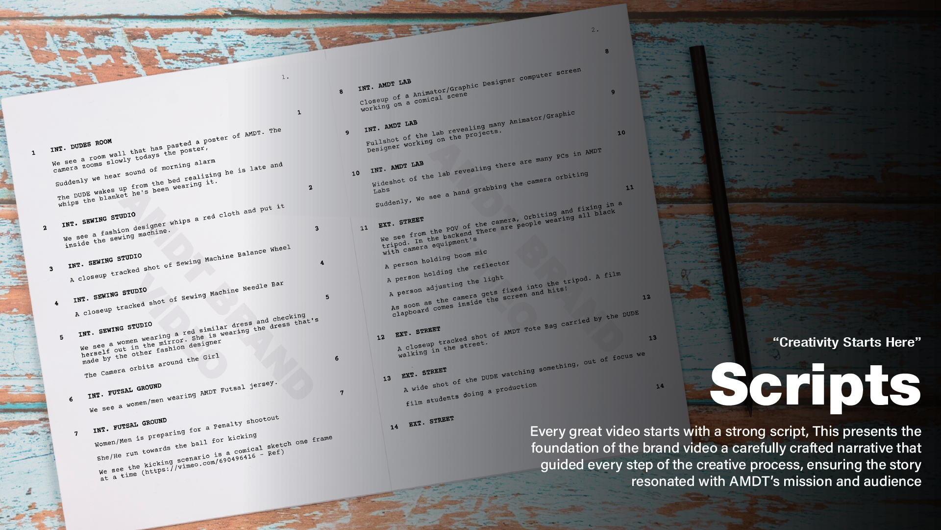 Every creative project begins with a solid plan. This section highlights the script that shaped the story and the storyboard that visualized the journey, providing a clear roadmap from concept to execution